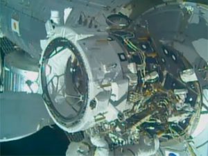 Two spacewalkers attached a new docking port to the International Space Station Friday, clearing the way for U.S. crew ferry ships being built by Boeing and SpaceX to begin test flights to the lab complex next year.