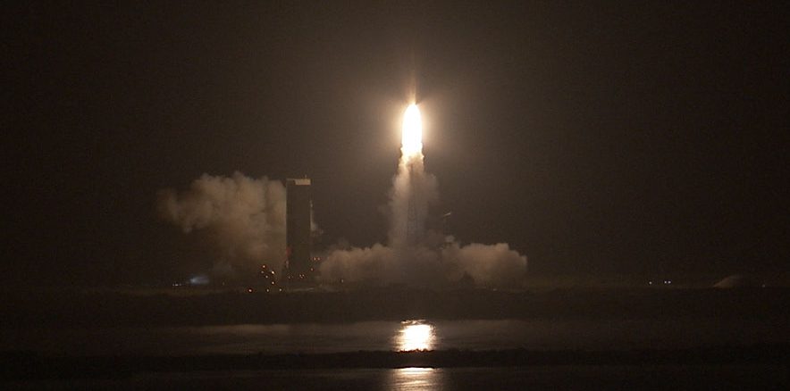 The United Launch Alliance Delta 4 rocket, standing 206 feet tall and and weighing 720,000 pounds, unleashes 1.1 million pounds of thrust from its main engine and two side-mounted boosters at 12:52 a.m. EDT (0452 today to launch the GSSAP No. 3 and No. 4 satellites for the Geosynchronous Space Situational Awareness Program from Cape Canaveral.