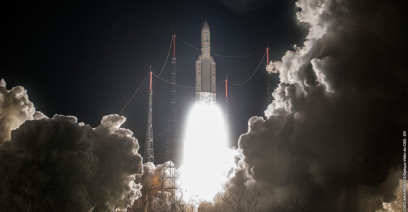 Two U.S.-built Intelsat communications satellites destined for different missions fired into space from French Guiana just after sunset Wednesday, vaulting due east over the Atlantic Ocean before separating from their Ariane 5 launcher right on target in geostationary transfer orbit.