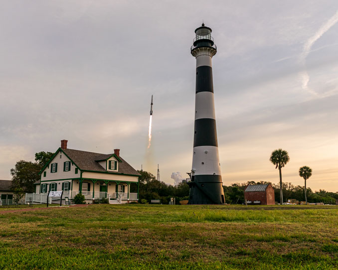Liftoff from the Cape Canaveral Space Force Station came at 7:25 a.m. EDT, 40 minutes after an unexplained hold in the countdown. When the count finally hit zero, the towering rocket’s seven methane-burning ME-4 engines ignited with a ground shaking roar and the booster began climbing away atop 3.8 million pounds of thrust.