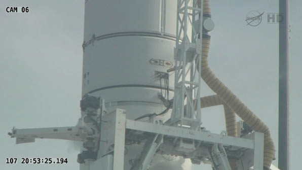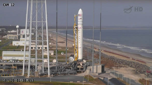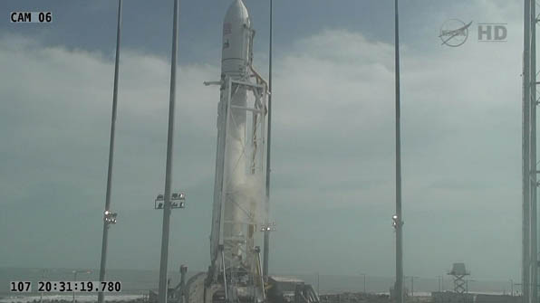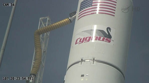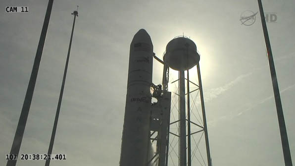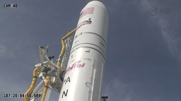 The Orbital Sciences Antares rocket was fueled up and counting down to launch Wednesday before an umbilical line to the second stage became disconnected, forcing officials to stop the clock and postpone the test flight.