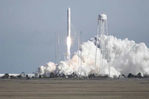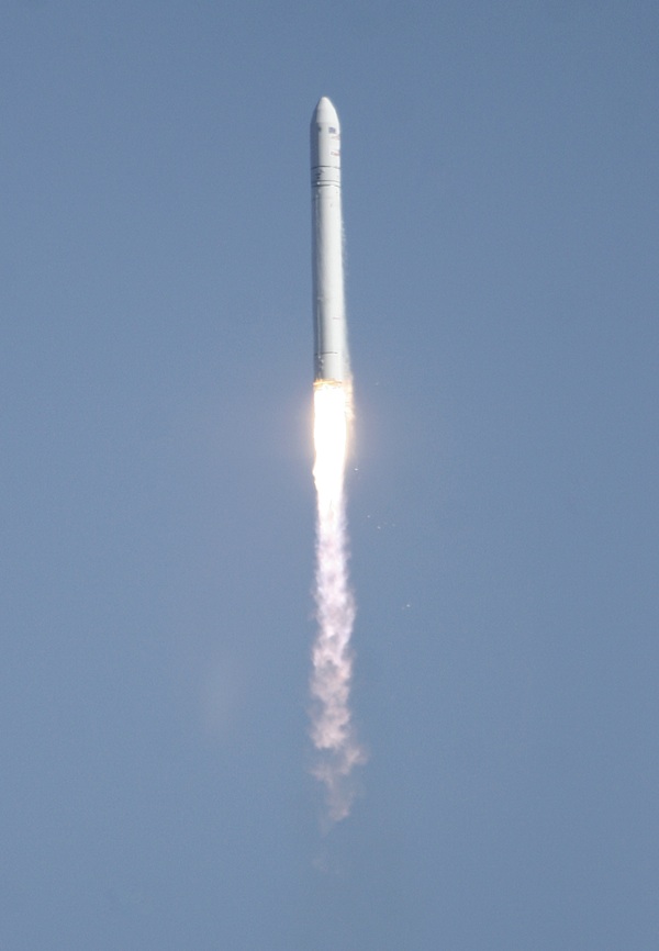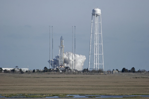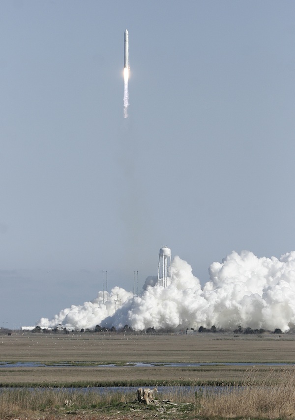 The Antares rocket soared into a crystal clear sky, remaining visible to observers for nearly four minutes. The 13-story rocket launched from Wallops Island, Va., at 5 p.m. EDT (2100 GMT) Sunday.