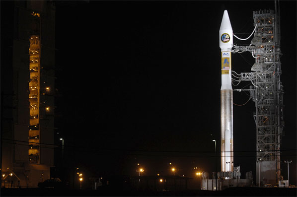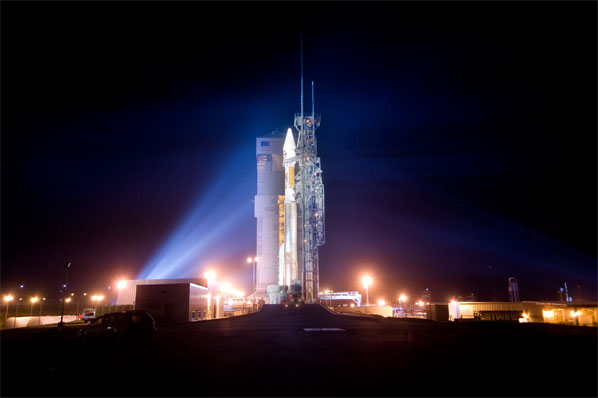 About four-and-a-half hours before liftoff time, 8-million-pound mobile service tower was rolled back from the Atlas 5 rocket at the Space Launch Complex-3 East pad.