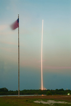 The mission entered a news blackout less than 20 minutes after the 196-foot-tall Atlas 5 rocket blasted off at 7:52 p.m. EDT (2352 GMT) from Cape Canaveral, Fla. The Atlas 5 rocket launched in the 501 configuration with a 5.4-meter payload fairing, no solid rocket boosters and a single-engine Centaur upper stage. Thursday's launch was the first flight of that version of the Atlas 5, and it was the first time the rocket's larger payload shroud has flown since 2006. "This vehicle is light enough to launch without the solid rocket motors even with the larger fairing, making this a rather unique configuration," said Lt. Col. Erik Bowman, commander of the 45th Launch Support Squadron at Cape Canaveral. After flying vertically away from the launch pad at Complex 41, the Atlas 5's Russian-made main engine steered the rocket east from the Space Coast and into a clear blue sky awash with breathtaking sunset colors. Less than four minutes into the flight, the Atlas 5 rocket was already at the edge of space, high enough to jettison the 17-foot diameter nose cone cocooning the miniature space shuttle. The Atlas first stage pulled away from the Centaur upper stage four-and-a-half minutes after liftoff, and the hydrogen-fueled RL10 engine ignited on time about 10 seconds later. After firing for nearly 13 minutes, the Centaur shut down on schedule. The upper stage cut loose of the spaceplane about 20 minutes after liftoff. United Launch Alliance and Air Force officials say the launch was successful. The Air Force is not releasing the ship's planned orbit, but officials say it is designed to operate at altitudes between 110 and 500 nautical miles, or 126 to 575 statute miles.