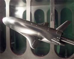 The X-37B is about one-quarter the length and width of a space shuttle orbiter. The reusable space plane is being manufactured by Boeing's Phantom Works division and will weigh about 11,000 pounds at launch, according to the Air Force. The spacecraft has completed testing and was awaiting launch early next year. But the end-of-year opportunity became available and the Air Force decided to move up the launch, officials said. "The X-37B space experimentation and test platform has recently successfully completed a series of environmental tests demonstrating availability for a December launch," the Air Force said in a written statement. "She's ready to fly," an Air Force spokesman said. The X-37B will fly a technology demonstration mission without significant payloads. It will fly in orbit for "an extended period of time," the Air Force said. The X-37B will make an automated re-entry and land on a conventional runway at Vandenberg Air Force Base, Calif. Subsequent missions could carry military science experiments or classified payloads. A press release issued in late 2006 that announced the project can be read here. |