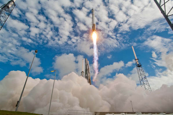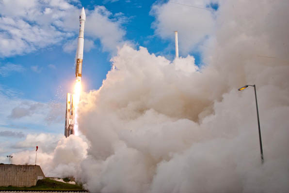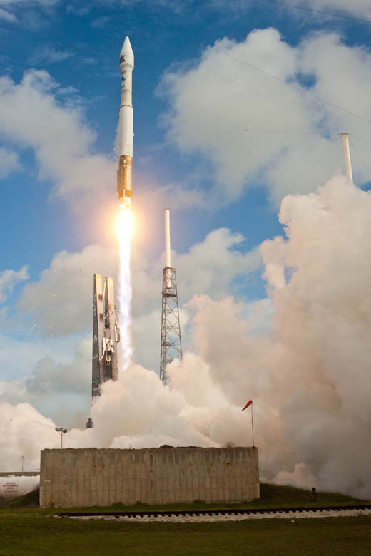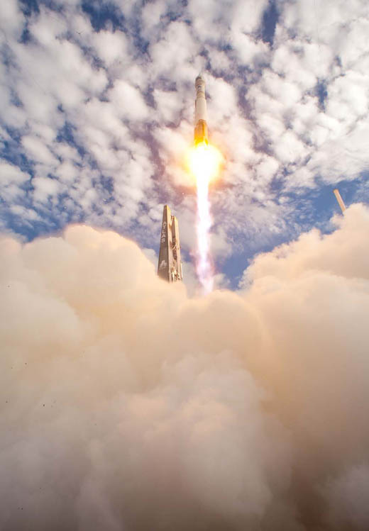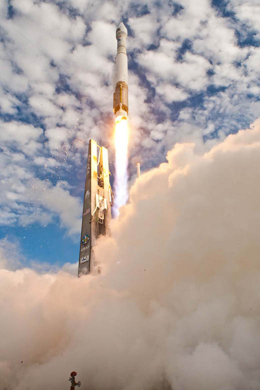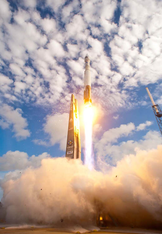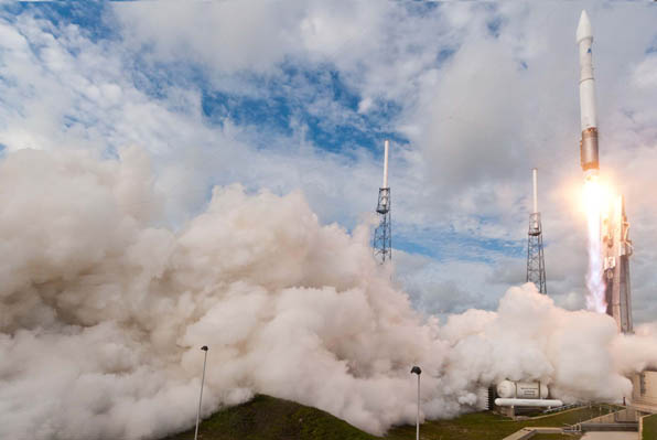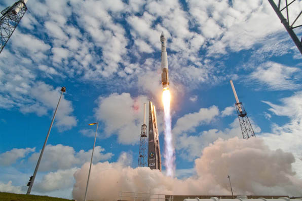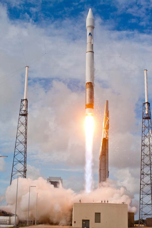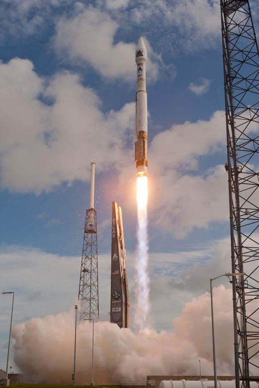 Marking a milestone in flight at the fore of American rocketry, an Atlas 5 majestically rose away from Cape Canaveral at 8:28 a.m. EDT Wednesday on the 50th mission for the Evolved Expendable Launch Vehicle program.