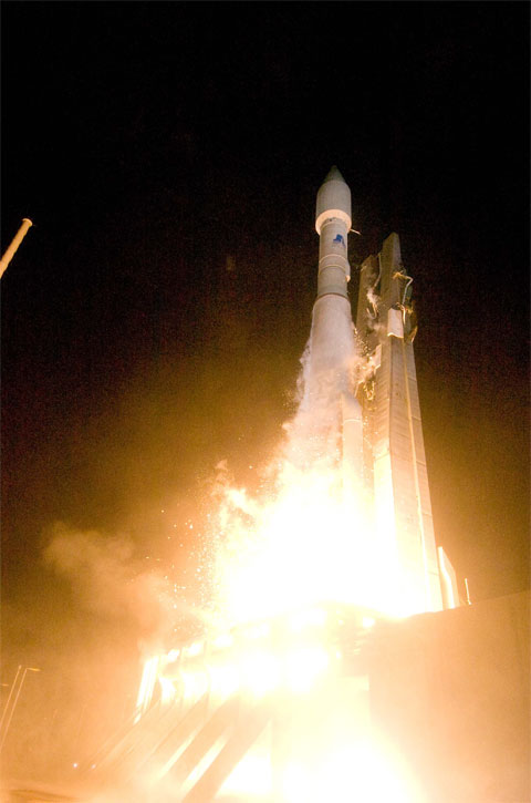 Atlas 5 rocket launches Intelsat 14 The Atlas 5 rocket launches from Cape Canaveral's Complex 41 at 1:55 a.m. EST carrying the commercial Intelsat 14 satellite, an international telecommunications spacecraft that will bridge the Atlantic with a broad reach to four continents. Photo credit: Pat Corkery/Lockheed Martin and United Launch Alliance