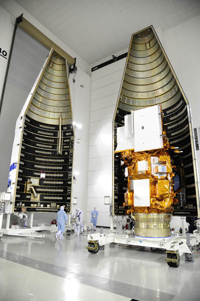The spacecraft arrived at Vandenberg from Orbital Sciences' factory in Arizona just before Christmas after a road-trip across the southwestern U.S. The satellite was processed inside the Astrotech commercial processing facility on North Base to undergo final testing and the loading of maneuvering fuel. It was lifted onto the launch vehicle's payload adapter system last Thursday, then Wednesday the craft was shrouded into the two-halves of the Atlas 5's 14-foot-diameter aluminum nose cone. The encapsulated satellite was driven to South Base overnight, arriving at Space Launch Complex 3-East around 6:25 a.m. local time. United Launch Alliance technicians went to work hoisting Landsat into the gantry for attachment atop the two-stage rocket. Initial connections were completed by 11:30 a.m. local. Integrated testing and final closeouts will be underway in the coming days, leading to the Launch Readiness Review on Friday morning, Feb. 8. The countdown picks up on launch morning, Monday, Feb. 11, a little after 2 a.m. local. The available launch window extends from 10:02 to 10:50 a.m. local (1:02-1:50 p.m. EST; 1802-1850 GMT). The mission will be NASA's first use of the Atlas 5 from the California launch site.