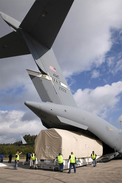 "This launch will provide even greater capabilities to a network that has become key to enabling many of NASA's scientific discoveries," said Jeff Gramling, project manager for TDRS at NASA's Goddard Space Flight Center. Today's arrival, touching down at the Shuttle Landing Facility at 8:29 a.m. EST in the Air Force C-17, kicks off the launch campaign for the satellite, which will include final testing, the loading of maneuvering propellant and encapsulation within the rocket's nose cone. Those activities will be performed in the spacecraft preparation facilities at the commercial Astrotech campus in Titusville over the next month. Once packed within the Atlas shroud, TDRS K will be hauled across the river to the rocket's assembly hangar Jan. 17 for mounting atop the booster. Stacking of the Atlas at the Vertical Integration Facility aboard a mobile launch platform begins with the first stage's erection on Jan. 3. After putting the interstage in place, the Centaur upper stage gets hoisted on Jan. 4.