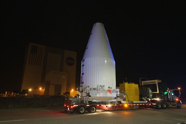 NASA's MAVEN spacecraft, the centerpiece of a $671 million mission to study the atmosphere of Mars, reached its penultimate stop before liftoff when technicians transported the delicate probe to the Atlas 5 rocket's seaside launch complex Friday, Nov. 8.
