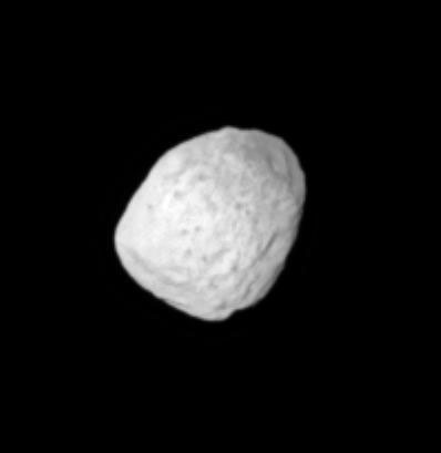 This close-up look at Saturn's moon Janus reveals spots on the moon's surface which may be dark material exposed by impacts. If the dark markings within bright terrain are indeed impact features, then Janus' surface represents a contrast with that of Saturn's moon Phoebe, where impacts have uncovered bright material beneath a darker overlying layer. Janus is 181 kilometers (113 miles) across.