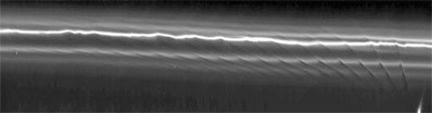 Images from Saturn's F ring region obtained by the Cassini Imaging Science Subsystem (ISS) cameras have revealed structure never seen before in a planetary ring. Periodic structures such as azimuthal gaps - "channels" of low optical depth - and "streamers" have been discovered. These features can be seen in Movie1. The origin of these features has been explored by a team at Queen Mary, University of London (QMUL) using numerical integrations. On Tuesday, Carlos Chavez of QMUL will be explaining to the RAS National Astronomy Meeting in Leicester the results of their computer models, which explain the close and complex relationship between Prometheus and the tangled F ring. "The models are in excellent agreement with structures observed in the Cassini images," said Chavez. "We have found that the gaps are not due to a lack of particles, but to a forced change in orbital elements by a close encounter with Prometheus," he explained. "The moon's gravity temporarily pulls some of the particles away from the main stream as it passes by." "It is like a crowd of people walking in a number of lines in the same direction down a street. Suddenly, someone else comes from the other side of the street and collides with a few of them. He then tells them to come with him, and walks away. Only people in the closest lines follow him, which produces gaps in the crowd. However, they return back to the main group shortly afterwards." The most dramatic case will happen in late 2009, when the F ring and Prometheus are anti-aligned. Once per orbit during this anti-alignment Prometheus will be at apoapsis (its furthest point from Saturn) and the nearby ring particles will be at periapsis (closest point to Saturn). At that time, Prometheus and the ring particles are at their closest to each other. The QMUL team explored how these events will affect collisions between the ring particles and Prometheus. They found a low number of collisions - only 0.6% of the particles collided per orbit. This was unexpected, since it was originally thought that Prometheus is a "thieving moon" stealing particles from the F ring. What actually happens is that the particles are only temporarily pulled away and then drift back into the ring. The ring-moon interactions are also likely to have an effect on the surface of Prometheus. Like our Moon and most other planetary satellites, Prometheus has a synchronous rotation, always showing the same face to Saturn. The team at QMUL investigated the location on Prometheus' surface where the particles would be expected to collide. They found that, in the synchronous co-rotating reference frame, the collisions surprisingly occurred on the trailing face of Prometheus, and preferably in the equatorial region. This scenario has important implications for the surface features of Prometheus, and the team expects to find differences in albedo (reflectivity) between the trailing and leading faces. "It would be like a man colliding with other people while facing continuously in a particular direction and hitting them with only one side of his body," said Chavez. Other members of the QMUL team examining the links between Prometheus and the F ring are: Prof. Carl D. Murray, Dr. Kevin Beurle, Dr. Nicholas J. Cooper, and Dr. Michael W. Evans. The 2006 RAS National Astronomy Meeting is hosted by the University of Leicester. It is sponsored by the Royal Astronomical Society, the UK Particle Physics and Astronomy Research Council (PPARC), the University of Leicester and the National Space Centre, Leicester. |