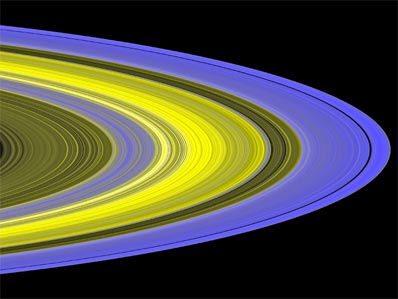 "If you were flying under Saturn's rings in an airplane, you would see these flashes of sunlight come through the gaps, followed by dark and so forth. This is different from flying under a uniform cloud of particles." Because previous interpretations assumed the ring particles were distributed uniformly, scientists underestimated the total mass of Saturn's rings. The mass may actually be two or more times previous estimates. "These results will help us understand the overall question of the age and hence the origin of Saturn's rings," said Josh Colwell, assistant professor of physics at the University of Central Florida, Orlando, and a team member of the Cassini ultraviolet imaging spectrograph. A paper with these results appears in the journal Icarus. Scientists observed the brightness of a star as the rings passed in front of the star on multiple occasions. This provided a measurement of the amount of ring material between the spacecraft and the star. "Combining many of these occultations at different viewing geometries is like doing a CAT scan of the rings," said Colwell. "By studying the brightness of stars as the rings pass in front of them, we are able to map the ring structure in 3-D and learn more about the shape, spacing and orientation of clusters of particles."