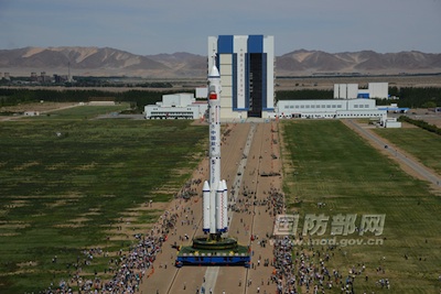 The flight would mark China's fourth human spaceflight and the first crewed mission to the country's Tiangong 1 spacecraft, a bus-sized module launched in September 2011. China's earlier piloted orbital flights accomplished the program's first spacewalk in 2008, and two astronauts spent nearly five days in space on a 2005 mission. Yang Liwei became the first Chinese citizen to reach space in 2003. Tiangong 1 was the destination for the unmanned Shenzhou 8 spacecraft in November, which successfully accomplished two automated link-ups with the module in orbit. The dockings were the first in China's space program, according to official media outlets. The Shenzhou 9 spacecraft, mounted atop a 191-foot-tall Long March 2F rocket, rolled to a launch complex at the Jiuquan space base Saturday. Several days of final testing are planned before the mission is approved for launch, officials said. The one-mile rollout from the Long March assembly building to the launch pad began at about 10:30 a.m. local time (0230 GMT) Saturday, according to a statement issued by the China Manned Space Engineering Office, or CMSEO, a military division which oversees Chinese human space missions. The rollout "indicates that the manned space rendezvous and docking mission between [the] Tiangong 1 and Shenzhou 9 spacecraft has entered the last preparation phase," the China Manned Space Engineering Office said in a statement posted on its website. Tiangong means heavenly palace in English, while Shenzhou is translated as divine craft.