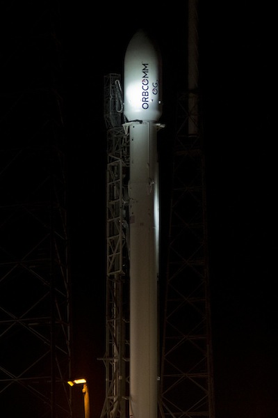 "A good way to look at it is six satellites give you OG2 coverage about 8 hours a day," Eisenberg said. "And then the other 16 hours a day, you've got OG1 coverage." Orbcomm decided to put six satellites on its first launch with SpaceX for a few reasons, according to Eisenburg. Six satellites will sufficiently fill Orbcomm's coverage gaps, and it allows ground controllers more time to focus on each spacecraft during post-launch commissioning. "Our No. 1 goal is to fulfill the mission objective, and the mission objective is to fill the hole in the sky and bring the average message down significantly," Eisenberg said in an interview. "You need a minimum of five to fulfill the mission objective. You want to go a little more than give because you want to take one of those spacecraft and start drifting it to get a feel for how that works." It also eases insurance worries, Eisenberg said. Insurance companies charged a higher rate for the first launch than the second flight, when officials expect the risk of of a launch or spacecraft risk will be mitigated by the experience with the first mission. The first Orbcomm OG2 satellite was lost on a SpaceX Falcon 9 launch in October 2012, which suffered a first stage engine failure and burned more propellant than planned to make up for the mishap. The 2012 launch achieved its primary purpose of delivering SpaceX's Dragon supply ship to the International Space Station, but there was not enough fuel to put the Orbcomm secondary payload in the correct orbit. The rocket released the spacecraft in a lower-than-planned orbit, but officials said engineers were able to unfurl the satellite's solar panel and antenna, demonstrating two of the craft's riskiest post-launch milestones. The satellite burned up in Earth's atmosphere after three days in orbit. Although it was not a factor in the decision, launching just six oven-sized satellites on the Falcon 9 rocket also gives SpaceX plenty of margin to try to recover the booster's first stage in the Atlantic Ocean a few hundred miles northeast of Cape Canaveral. The Falcon 9's first stage, fitted with four carbon fiber and aluminum honeycomb landing legs, will reignite its engines after completing its job to boost the Orbcomm satellites into space. While the launcher's second stage continues firing to put the satellites in orbit, the first stage will autonomously fly itself back to Earth, reducing its velocity before falling into the sea. Recovery crews stationed near the landing zone will attempt to retrieve the stage intact. SpaceX wants to eventually fly its rocket boosters back to the launch site for reuse. The first stage from the Falcon 9's previous launch in April splashed down in the Atlantic as designed, but rough seas prevented crews from getting to the rocket before it was destroyed by waves. "This time, we're going to have much more capable boats," Elon Musk, SpaceX's founder and CEO, told reporters in April. "We kind of got unlucky in that we landed the stage in the middle of a storm. It will also be landing in the water much closer to land than last time, so I think hopefully we'll avoid some of the deep ocean stuff."