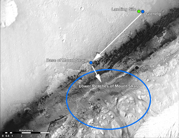"This is simply a thrilling image that underscores the reason we chose this landing site," he said. "That's about 7 kilometers away (4.4 miles) from where the rover is now. What's really cool about this topography is that the crater rim kind of looks like the Mojave Desert and now what you see here kind of looks like the Four Corners area of the western U.S., or maybe around Sedona, Ariz., where you've got these buttes and mesas made out of these layered, kind of light-toned reddish-colored outcrops, there's just a rich diversity over there. "There should be hydrated minerals in all those layers. So ultimately, that's our goal. We've got stuff to do before we head there, but that's our broad, strategic plan right now."