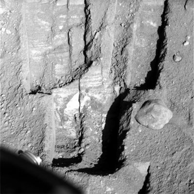 "This is pretty exciting stuff and we are anxious to find out what makes this deeper soil cloddier than the other samples," said Doug Ming, a Phoenix science team member from NASA's Johnson Space Center, Houston. The surface of the vast arctic plain where Phoenix landed on May 25 bears a pattern of polygon-shaped small hummocks, similar to some permafrost terrain on Earth. Scientists are particularly interested in the new sample because it is the first delivered to an analytical instrument from a trench on the margin between two of the polygons, where different material may collect than what has been analyzed from near the center of a polygon. Seen inside Phoenix's scoop Sunday, the sample material from the bottom of the trench displayed clumping characteristics somewhat different from other cloddy soil samples that have been collected and examined. A series of images of fresh soil dug and discarded from Stone Soup trench have given some clues to the composition of the sample. While spectral observations have not produced any sign of water-ice, bigger clumps of soil have shown a texture that could be consistent with elevated concentration of salts in the soil from deep in the trench. The lander's wet chemistry laboratory can identify soluble salts in the soil. The science team has been studying a movie created from still pictures of the nearby Martian sky showing dramatic water ice clouds moving over the landing site during a 10-minute period on Sol 94 (Aug. 29). "The images were taken as part of a campaign to see clouds and track wind. These are clearly ice clouds," said Mark Lemmon, the lead scientist for the lander's surface stereo imager, from Texas A&M University. The Phoenix mission is led by Peter Smith at The University of Arizona with project management at NASA's Jet Propulsion Laboratory in Pasadena, Calif., and development partnership at Lockheed Martin in Denver. International contributions come from the Canadian Space Agency; the University of Neuchatel, Switzerland; the universities of Copenhagen and Aarhus in Denmark; the Max Planck Institute in Germany; and the Finnish Meteorological Institute. |