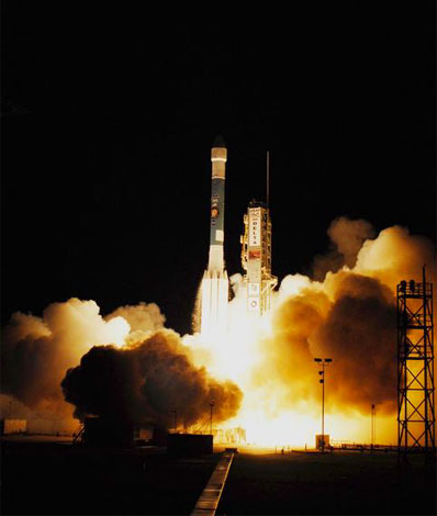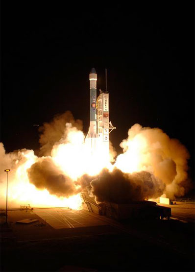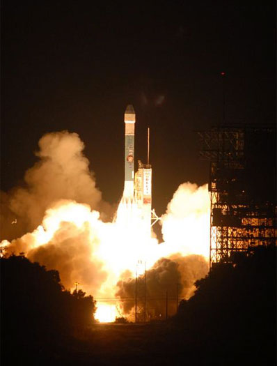 NASA's Phoenix spacecraft departs Earth atop a United Launch Alliance Delta 2 rocket at 5:26 a.m. August 4 to begin a 10-month interplanetary cruise to Mars.