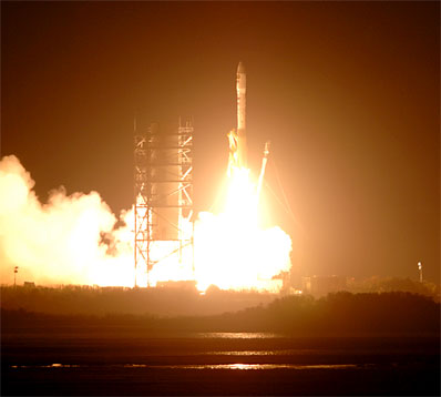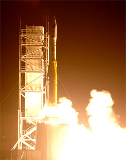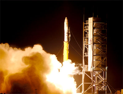 The Missile Defense Agency's Near Field Infrared Experiment, or NFIRE, spacecraft lifted off from the Mid-Atlantic Regional Spaceport on Wallops Island at 2:48 a.m. EDT (0648 GMT). An initial countdown Monday was scrubbed by a ground support equipment problem. The Minotaur's first minutes of flight were powered by two left-over motor stages from decommissioned Minuteman 2 intercontinental ballistic missiles. They propelled the rocket on the way to space before two additional solid-propellant stages from Orbital's commercial air-launched Pegasus rocket program each fired to achieve the desired orbit of 135 by 245 nautical miles with an inclination of 48.2 degrees to the equator. The 1,089-pound spacecraft was deployed from the rocket about 9 minutes after liftoff, becoming the 25th satellite deployed by Minotaur. It marked the 13th Minotaur program flight since 2000, including seven missions using the Minotaur 1 satellite-launching version and six suborbital Minotaur 2 missile test boosters flown for the military. "We are now focused on the three upcoming Minotaur launches in the second half of this year, including two Minotaur 2 long-range target vehicles scheduled for (Missile Defense Agency) flights this summer from Vandenberg Air Force Base, California, and another Minotaur 1 mission scheduled to be launched from Wallops late in the year carrying the Air Force's TacSat 3 spacecraft," said Ron Grabe, Orbital's executive vice president and general manager of its Launch Systems Group.