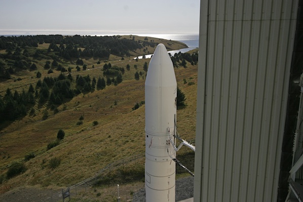 A few days before it was scheduled to lift off with a U.S. Navy communications satellite, the Minotaur 4 rocket was exposed at Kodiak Launch Complex during a mission dress rehearsal to practice final countdown procedures. These images of the 78-foot-tall rocket were taken on the surface of Launch Pad No. 1 and on the rotating Launch Service Structure. Photos: Stephen Clark/Spaceflight Now