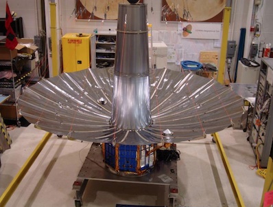 TacSat 4 was developed by the Naval Research Laboratory, marking that organizations 100th satellite since the dawn of the space age. Its objective is to demonstrate advanced communications capabilities for U.S. forces deployed in war zones like Afghanistan. Mike Hurley, the lab's head of spacecraft development, said the TacSat 4 "antenna has deployed and is working well," adding the satellite has already started processing voice data to and from user radios on the ground. Designed and built in-house by the Navy Research Laboratory for approximately $2 million, the 60-pound antenna was folded up like an umbrella for launch. A strap connected with a breakable joint held the antenna in the launch position until the command was issued to deploy, then 20 springs pushed out the antenna in a few seconds. Commercial satellite antenna-builders have approached the Navy for details on the TacSat 4 design, according to Hurley. Many satellite antennas are much more costly, and industrial proposals to build TacSat 4's antenna were too expensive for the mission's limited budget. TacSat 4's payload includes 10 UHF communications channels. According to military officials, UHF communications make up for a lack of bandwidth with high reliability.