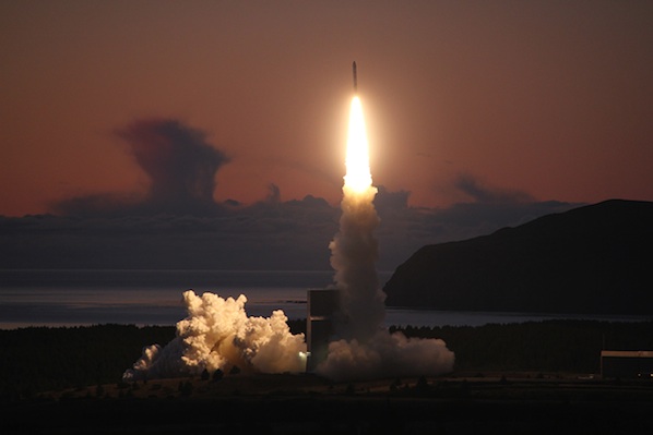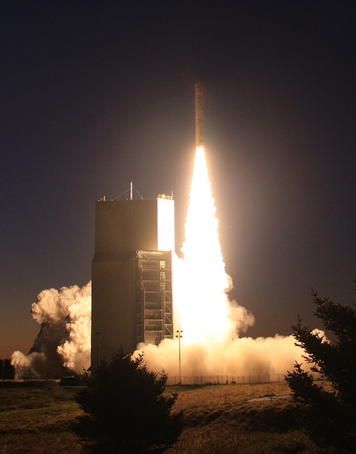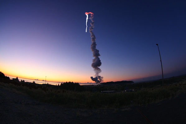 The Minotaur 4 rocket launched just before sunrise from the Kodiak Launch Complex in Alaska on Tuesday. It was hauling a Navy communications satellite into space. Photos: Orbital Sciences Corp./William G. Hartenstein