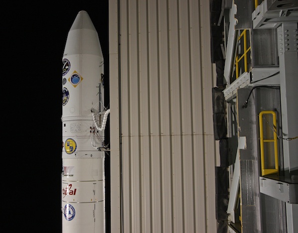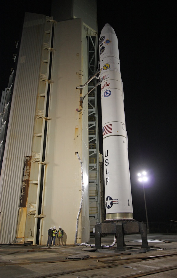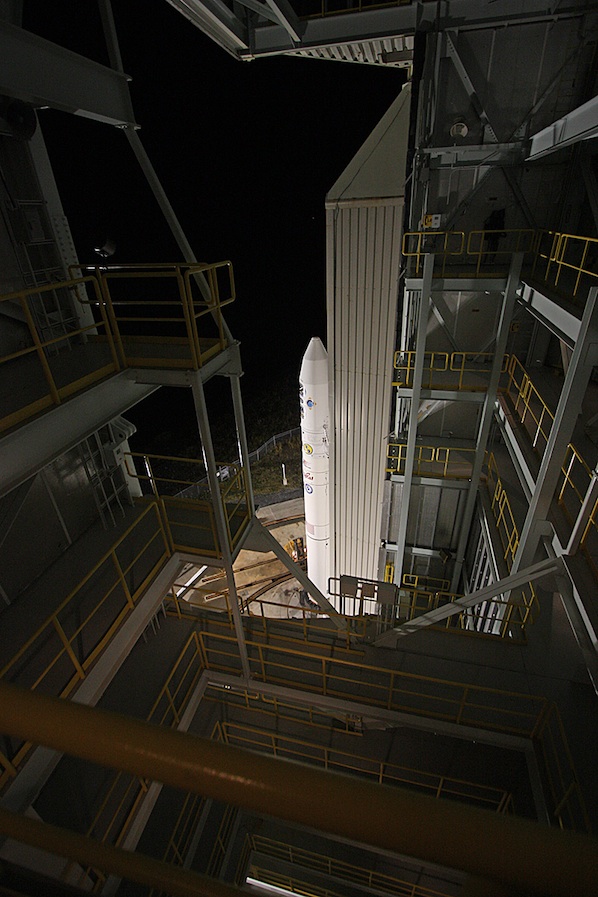 Photos: Minotaur launch dayPad crews retracted the rotating launch service structure away from the Minotaur 4 rocket at about 3:30 a.m. Alaska time Tuesday, several hours before the 78-foot-tall booster was scheduled to blast off with a U.S. Navy communications satellite. Photos: Stephen Clark/Spaceflight Now