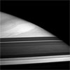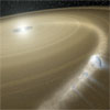 In this magnificent view from the Cassini orbiter, delicate haze layers high in the atmosphere encircle the oblate figure of Saturn. A special combination of spectral filters used for this image makes the high haze become visible. A methane-sensitive filter makes high altitude features stand out, while a polarizing filter makes small haze particles appear bright.