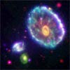 A new picture from NASA's Galaxy Evolution Explorer completes a multi-wavelength, neon-colored portrait of the enormous Cartwheel galaxy after a smaller galaxy plunged through it, triggering ripples of sudden, brief star formation.