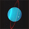 Now, in southern summer, Saturn's shadow stretches across the sunlit southern surface of its rings. Saturn's moon Janus orbits just outside of the main rings and appears below them in this scene. Janus is absolutely dwarfed by the bulk of its gigantic parent.