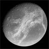This splendid view from the Cassini spacecraft orbiting Saturn showcases the moon Dione's tortured complex of bright cliffs. At lower right is the feature called Cassandra, exhibiting linear rays extending in multiple directions.