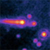 NASA and Italian scientists using the Swift spacecraft have for the first time determined what the particle jets streaming from black holes are made of. The jets observed by Swift contain about the mass of Jupiter if it were pulverized and blasted out into intergalactic space.