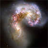 A new Hubble image of the Antennae galaxies is the sharpest yet of this merging pair of galaxies. As the two galaxies smash together, billions of stars are born, mostly in groups and clusters of stars. The brightest and most compact of these are called super star clusters.