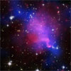 Astronomers have discovered a chaotic scene unlike any witnessed before in a cosmic "train wreck" between giant galaxy clusters. NASA's Chandra X-ray Observatory and optical telescopes revealed a dark matter core that was mostly devoid of galaxies, which may pose problems for current theories of dark matter behavior.