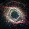 A newly expanded image of the Helix nebula lends a festive touch to the fourth anniversary of the launch of NASA's Spitzer Space Telescope. This spectacular object, a dying star unraveling into space, is a favorite of amateur and professional astronomers alike. Spitzer has mapped the expansive outer structure of the six-light-year-wide nebula, and probed the inner region around the central dead star to reveal what appears to be a planetary system that survived the star's chaotic death throes.