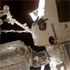 Astronauts Scott Parazynski and Doug Wheelock went outside for a spacewalk Tuesday to re-attach the 35,000-pound P6 solar array truss after a two-day, 145-foot move, bolting it to the far left end of the space station's main power truss where it will remain for the life of the lab complex.