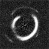NASA's Hubble Space Telescope has revealed a never-before-seen optical alignment in space: a pair of glowing rings, one nestled inside the other like a bull's-eye pattern. The double-ring pattern is caused by the complex bending of light from two distant galaxies strung directly behind a foreground massive galaxy, like three beads on a string.