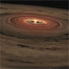 Researchers using NASA's Spitzer Space Telescope have discovered large amounts of simple organic gases and water vapor in a possible planet-forming region around an infant star, along with evidence that these molecules were created there. They've also found water in the same zone around two other young stars.