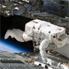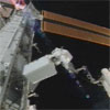 Space station commander Mike Fincke and flight engineer Yury Lonchakov made a five-hour, 38-minute spacewalk Monday night, lasting from 7:51 p.m. to 1:29 a.m. EST to install an instrument that will measure the electrical environment around the station and to install and remove space exposure experiments. One package could not be hooked up and was brought back inside.