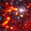 Some stars have it tough when it comes to raising planets. A new image from NASA's Spitzer Space Telescope shows one unlucky lot of stars, born into a dangerous neighborhood. The stars themselves are safe, but the material surrounding them -- the dusty bits of what might have been future planets -- can be seen blowing off into space.
