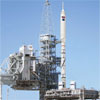 GANTRY TOWERS ENCLOSE SOYUZ ROCKET AT THE PAD PLAY