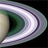 Saturn's icy moon Enceladus hovers above Saturn's exquisite rings in this color view from Cassini. The rings, made of nearly pure water ice, have also become somewhat contaminated by meteoritic dust during their history, which may span several hundred million years.