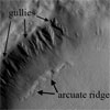 Geologic features in Martian craters shaped by water