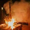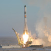 Aiming for a six-month mission at the International Space Station, two rookie Russian cosmonauts and a former American space shuttle astronaut launched aboard a Soyuz capsule Friday at 12:04 a.m. EDT.