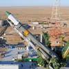 Russian specialists have rolled the Soyuz rocket to the launch pad for Wednesday's 7:11 a.m. EDT (1111 GMT) liftoff carrying the next cargo freighter destined to service the International Space Station. The booster was transported by rail from its final assembly building and erected on the pad Monday.