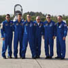 The six astronauts to fly Endeavour's final orbital voyage have jetted into the Kennedy Space Center for this week's countdown dress rehearsal with the space shuttle launch team.