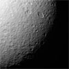 This richly textured look at Saturn's moon Tethys shows the huge crater Odysseus and its central mountain in relief, as well as many smaller impact sites. Vertical relief on solid solar system bodies is often most easily visible near the terminator (the line between day and night).