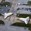 Two space shuttle orbiters swapped places at the Kennedy Space Center on Thursday as NASA prepares the retired spaceships for public display in museums. The unique morning climaxed with a nose-to-nose photo opportunity with Discovery and Endeavour.