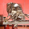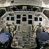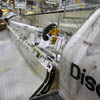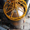 Already having been powered off for the final time, the shells of rocket pods installed on her tail and nose and key components removed for future use, technicians Tuesday finished inserting replica main engines on space shuttle orbiter Atlantis for permanent display at Kennedy Space Center's Visitor Complex.