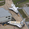 Mere minutes after the Delta 4-Heavy rocket's thunderous roar reverberated across Florida's Space Coast on its successful trek to space Friday morning, the retired space shuttle Atlantis made a brief appearance outdoors as she moved from the hangar to the Vehicle Assembly Building.